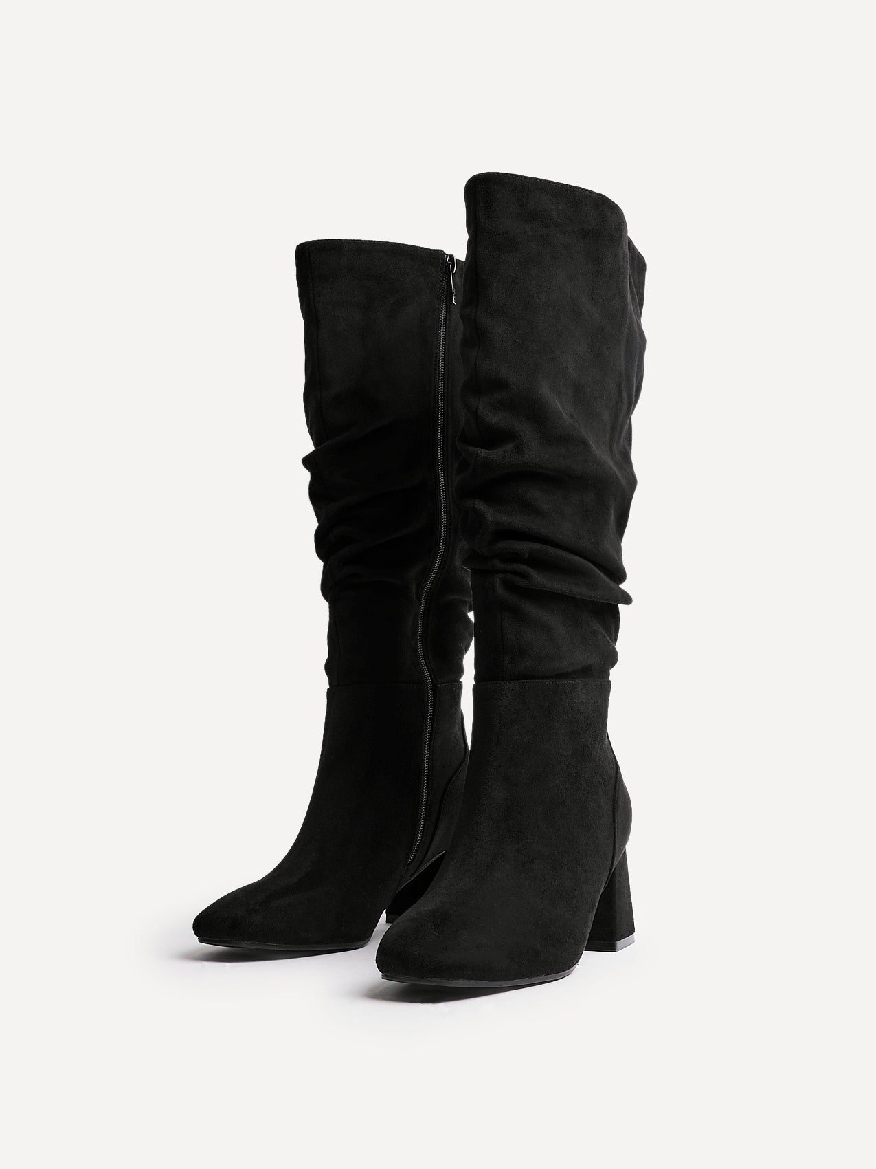 Wide Fit Black Faux Suede Ruched Long Heeled Boot