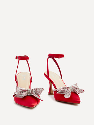 Angela Red Satin Bow Heels