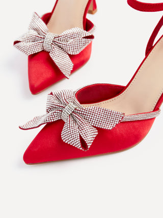 Red Satin Diamante Bow Detail Court Heel