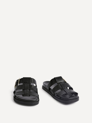 Our Restore gladiator style sandals are crafted from luxurious faux leather. These slip-on sandals feature wide interlaced straps with a gold buckle for a touch of sophistication. Made with a comfortable moulded footbed, these sandals are perfect for all-day wear.