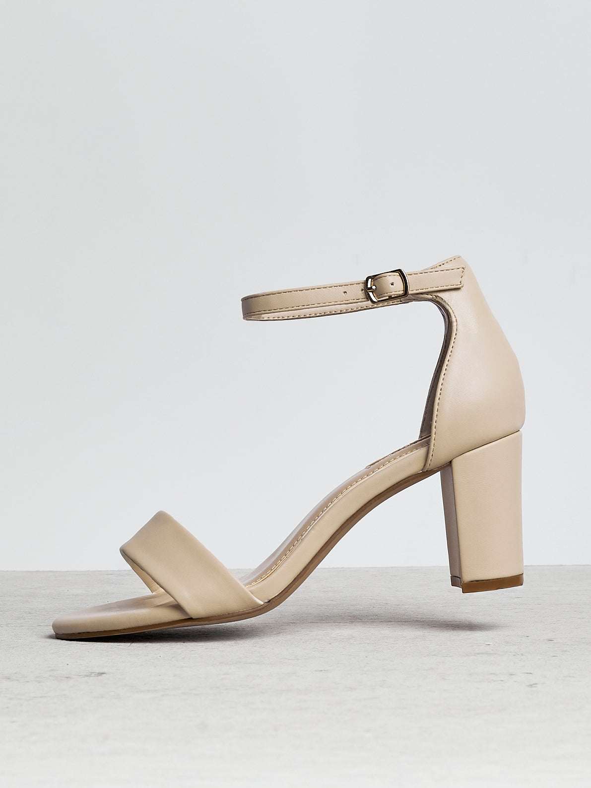 Nude Faux Leather Barely There Closed Back Block Heeled Sandal