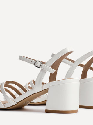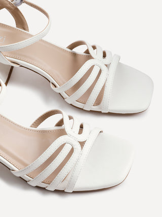 White Faux Leather Strappy Heeled Sandals With T-Bar