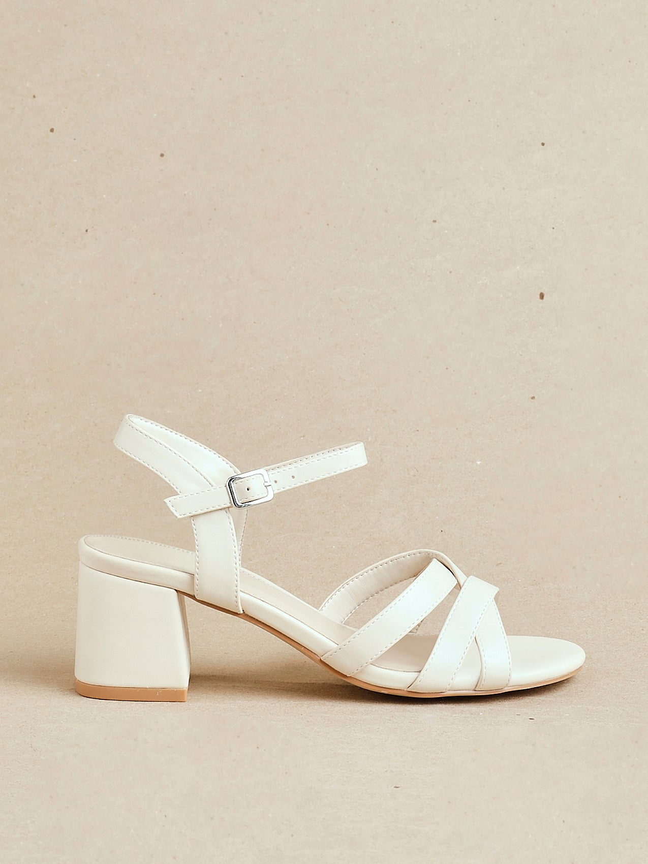 Nude Faux Leather Heeled Sandals With Crossover Straps