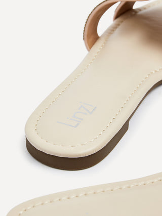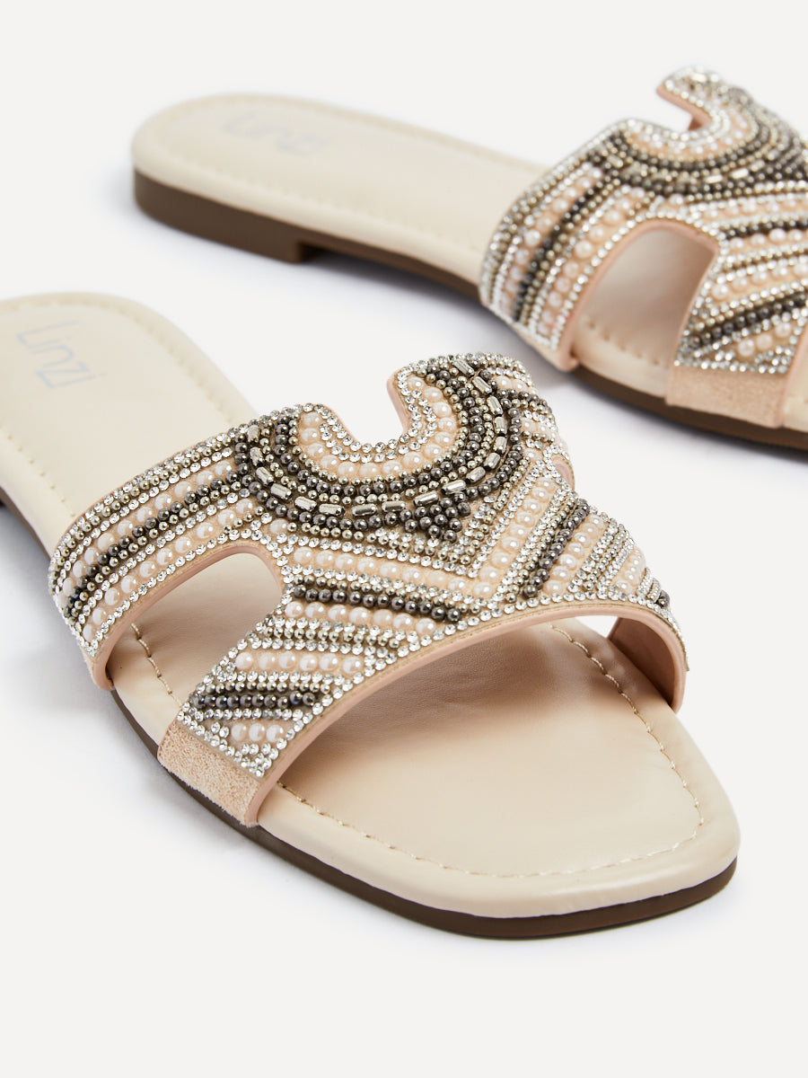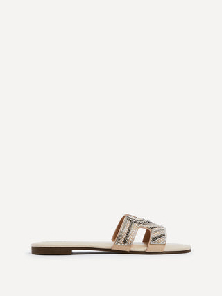 Nude Faux Leather Aztec Design Embellished Slider Sandal