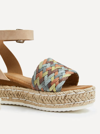 Nude Faux Leather Flatform With Multi Coloured Plaited Front Strap