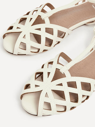 Ivory Faux Leather Caged Flat Sandal