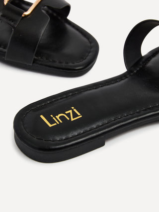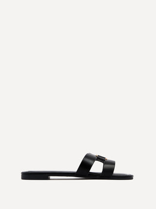 Sasha Black Gold Buckle Slider Sandals