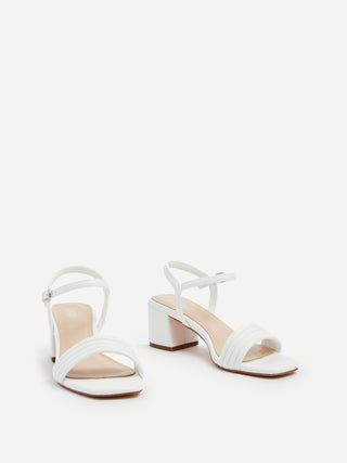 White Faux Leather Block Heeled Sandal With Ribbed Front Strap