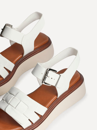 White Faux Leather Flatform Sandals